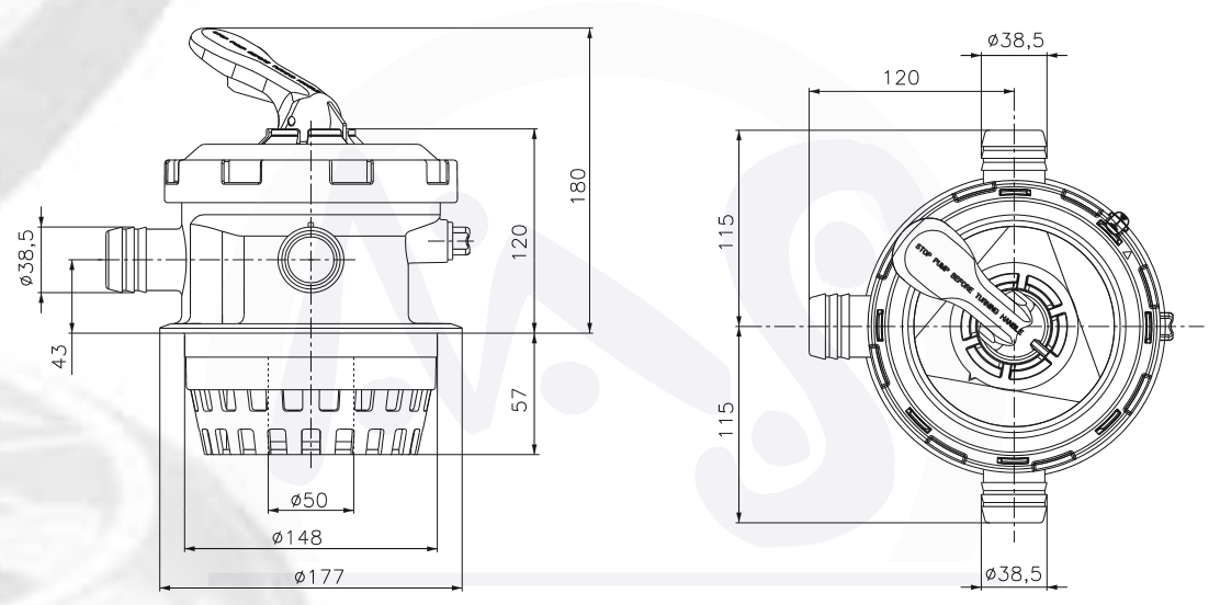 Produktinformationen "6-Wege-Top-Mount-Ventil mit 38 mm Schlauchstutzen inkl. Klemmring u Dichtung"