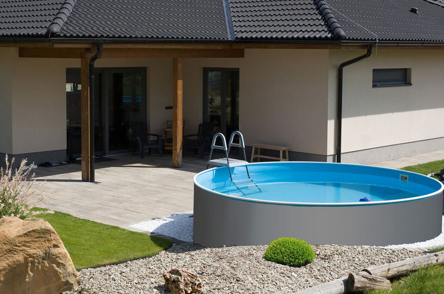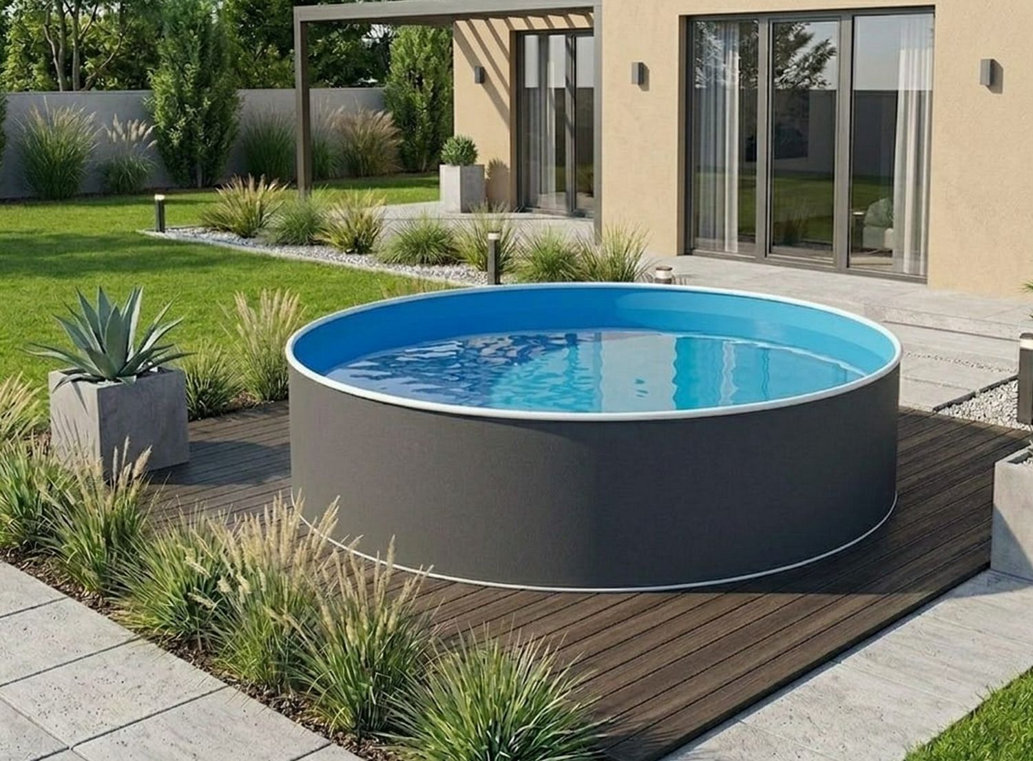 Mit diesem optisch eleganten Pool in Graphit sieht Ihr Garten einfach toll aus.