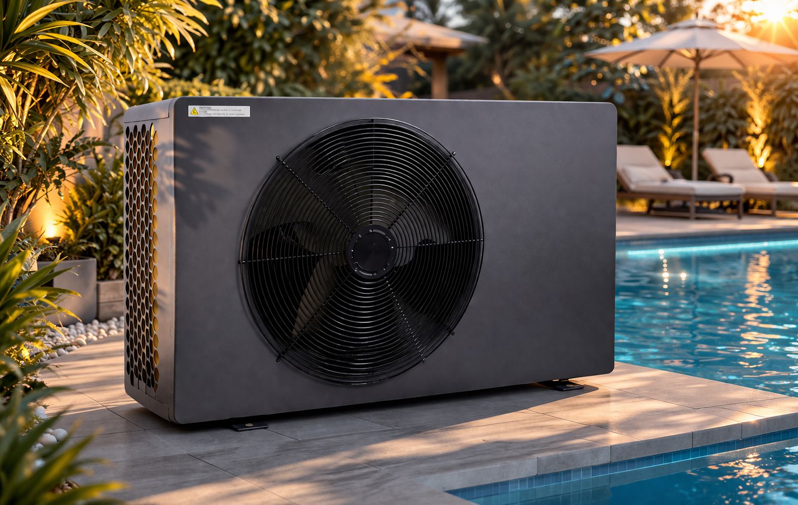 durch Strom in nutzbare Wärme für Ihr Schwimmbeckenwasser um.