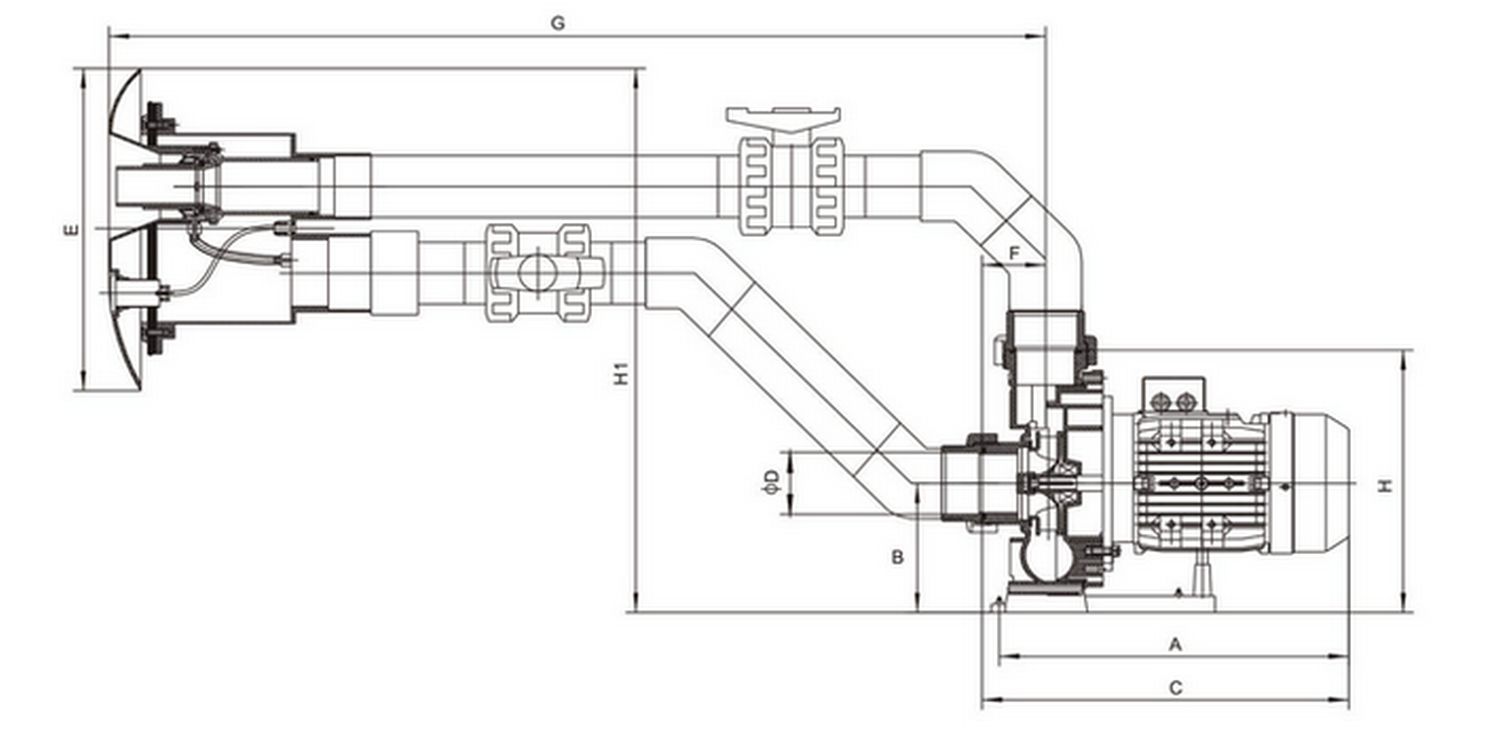 Der Druckschalter, die Ausströhmdüse und die Ansaugung